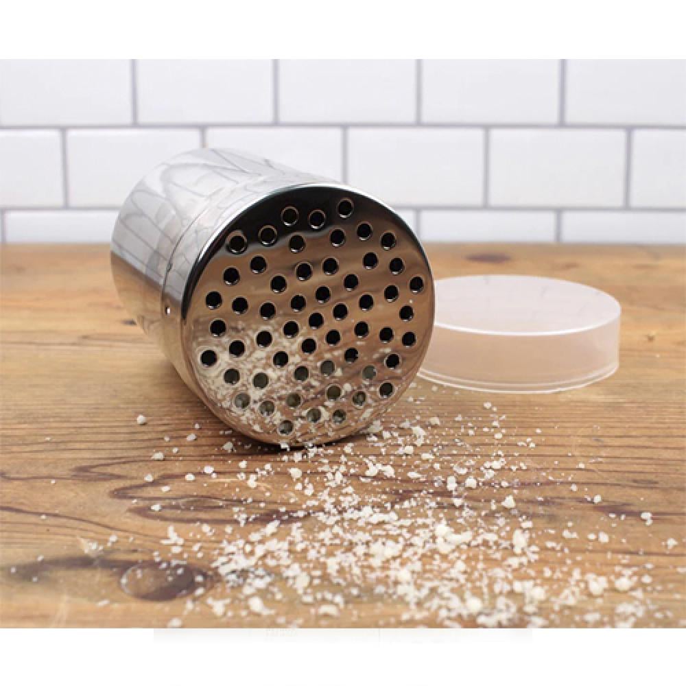 مرش ستانلس ستيل 11 اونص فتحات وسط مع غطاء للسمسم والزعتر والمكسرات المجروشه في علبة عرض